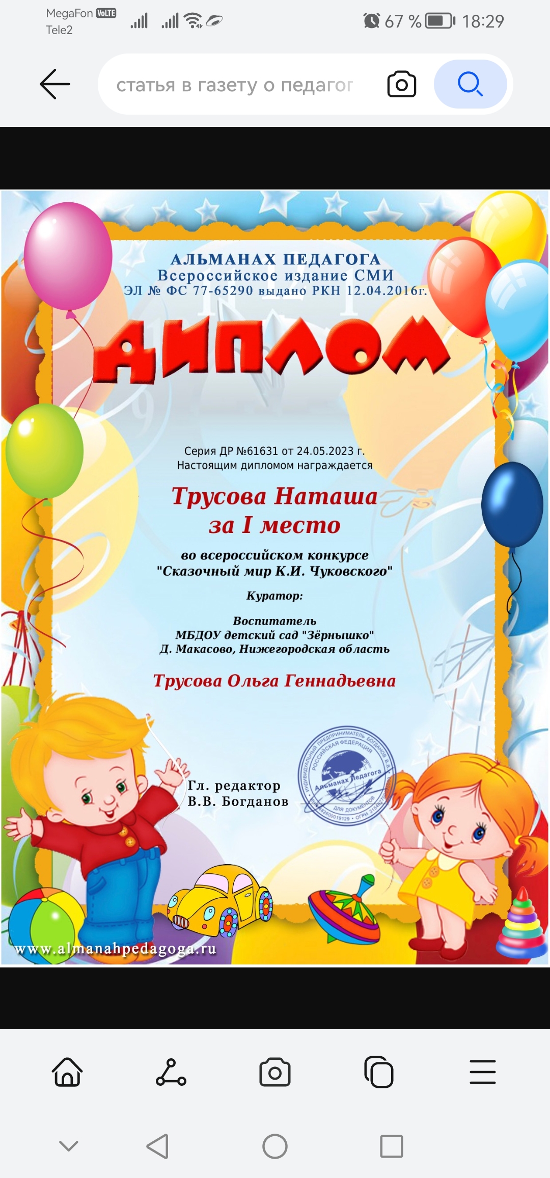 воспитателя