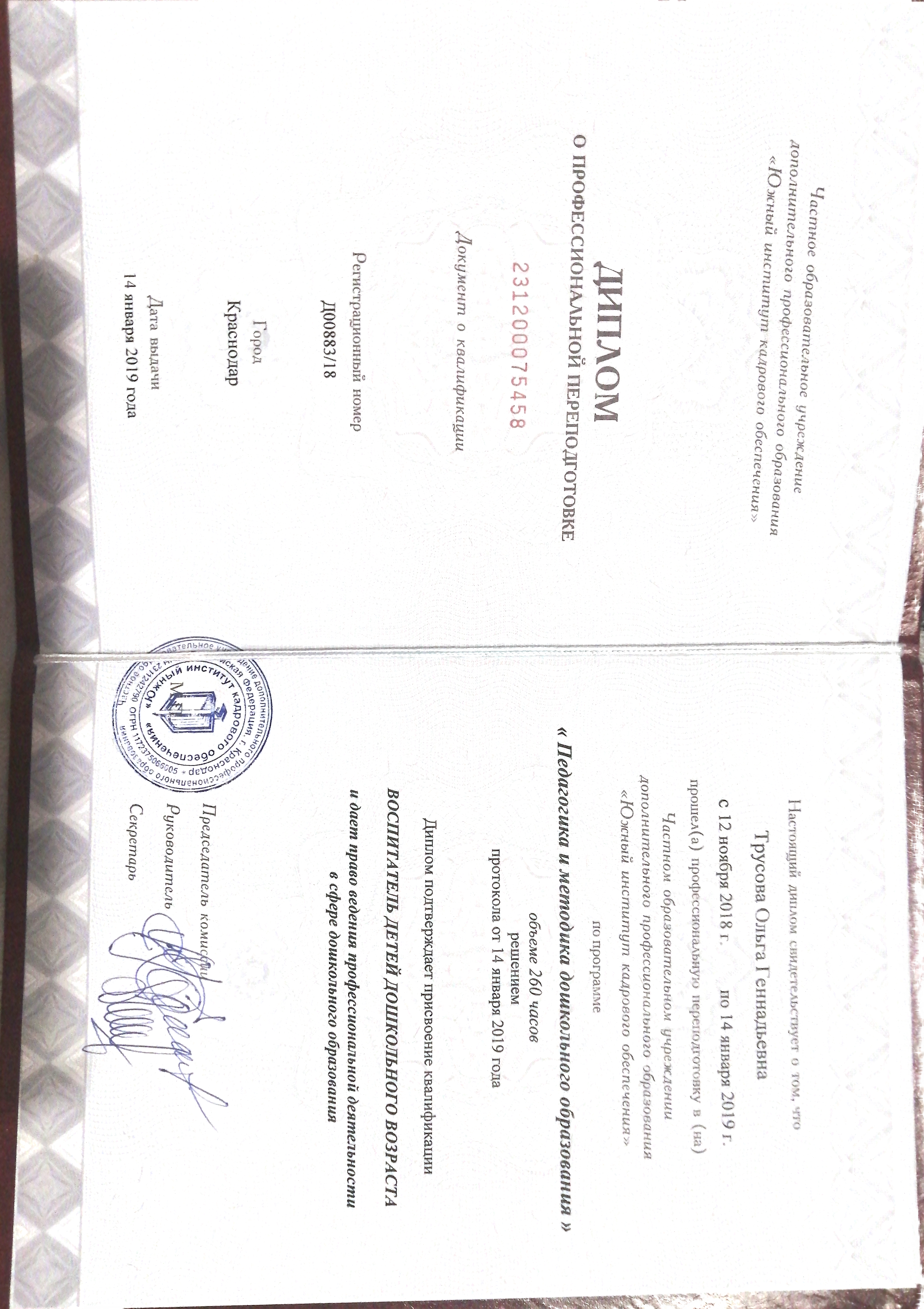 (Частное образовательное учреждение дополнительного профессионального образования. 260часов. ).
