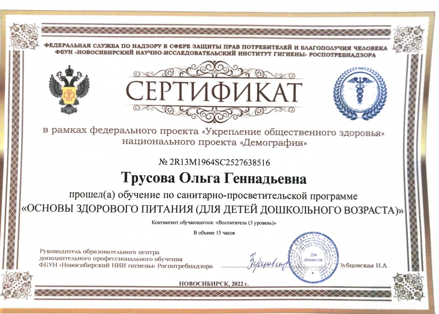 (Федеральная служба по надзору в сфере защиты прав потребителей и благополучия человека ФБУН "Новосибирский научно-исследовательский институт гигиены" роспотребнадзора. 15часов.).